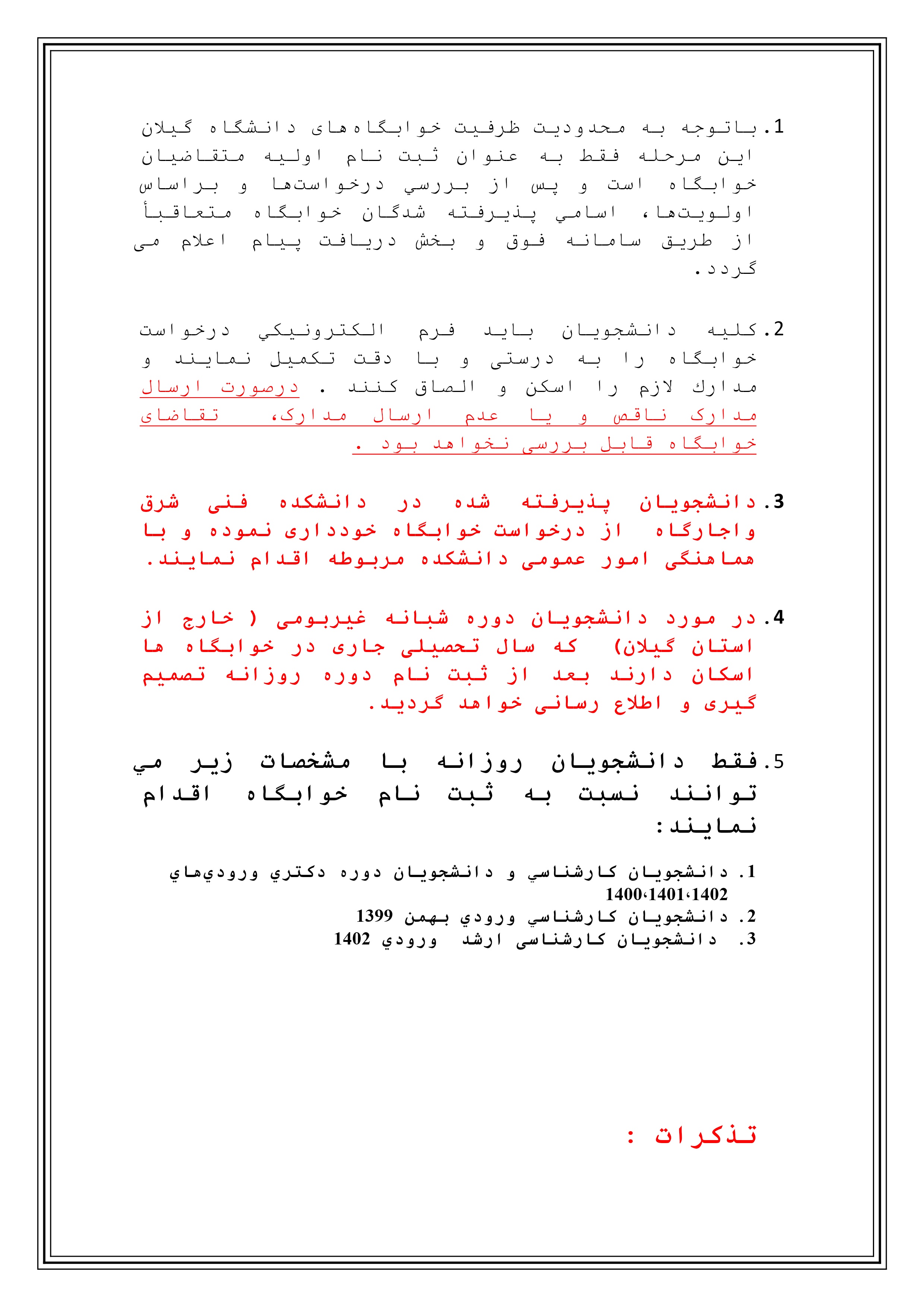 شرایط و مهلت درخواست خوابگاه برای سال تحصیلی1404-1403