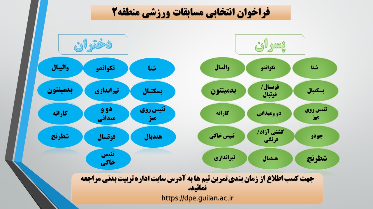 دانشجویان گرامی : جهت کسب اطلاع از زمان بندی تمرین تیم ها به آدرس سایت اداره تربیت بدنی قسمت اطلاعیه ها مراجعه نمائید.