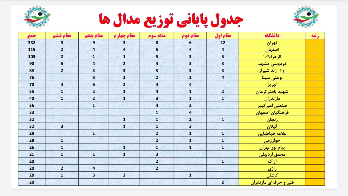 ضمن تشکر از زحمات خانم فاطمه برقیکار و مربی محترم تیم دو و میدانی دانشگاه گیلان، سرکار خانم فاطمه رضاپور کسب این مقام ارزشمند را به ایشان تبریک عرض مینماییم و آرزوی تندرستی و موفقیت برای این عزیزان داریم.